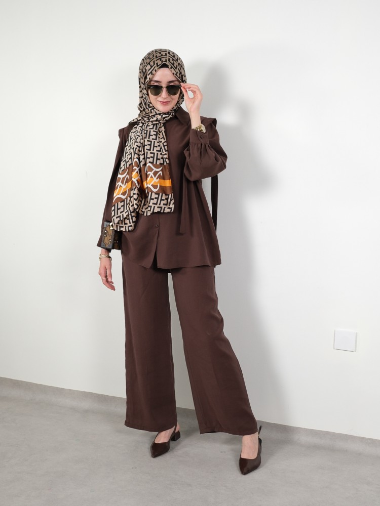Mira Modal Takım, sade ama güçlü duruşuyla stilinizi zarafetle tamamlıyor. Yumuşak dokulu modal kumaşı sayesinde gün boyu nefes alır ve dökümlü formuyla üst düzey bir konfor sunar. Modern omuz detayıyla siluete zarif bir dinamizm kazandırırken, salaş kesimiyle şıklığı ve rahatlığı bir araya getirir. Düğmesiz yakası ve geniş paça pantolonu, takıma minimal bir şıklık katarken; esnek yapısı sayesinde günün her anına uyum sağlar. 36-42 beden aralığına uygun olan bu salaş kalıp, vücuda oturmadan özgür bir duruş sunar. Gerek şehir şıklığında gerekse ofis stilinde konforla tercih edilebilecek bu takım, günlük kombinlerinizde sofistike bir dokunuş arayanlara özel tasarlandı.