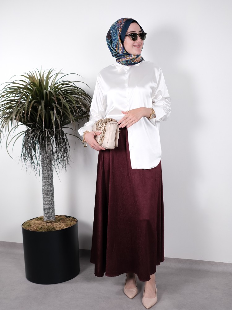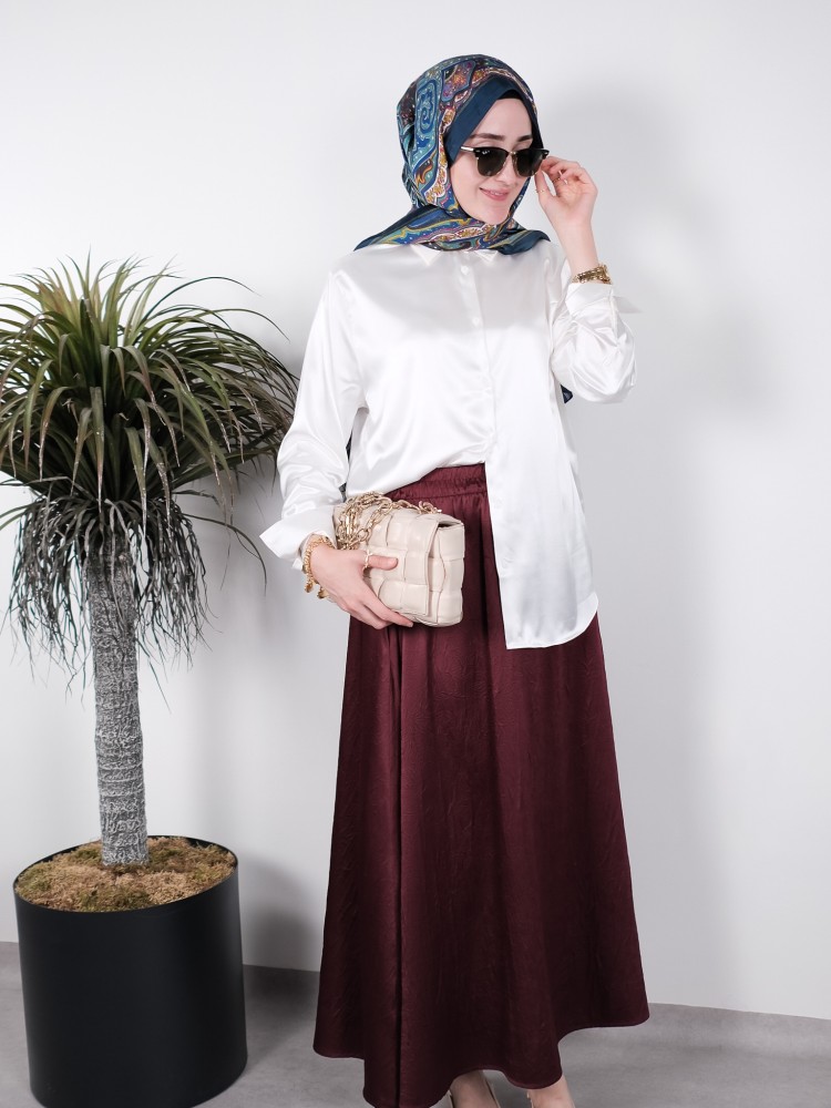 İnci Beyazı Saten Gömlek