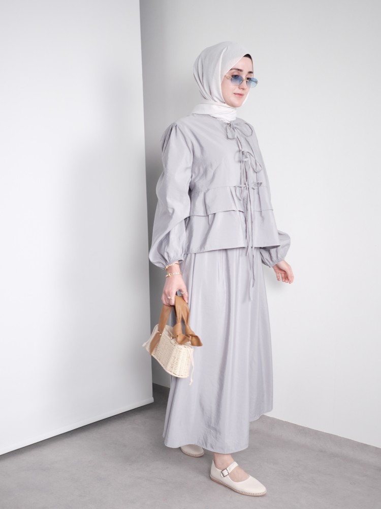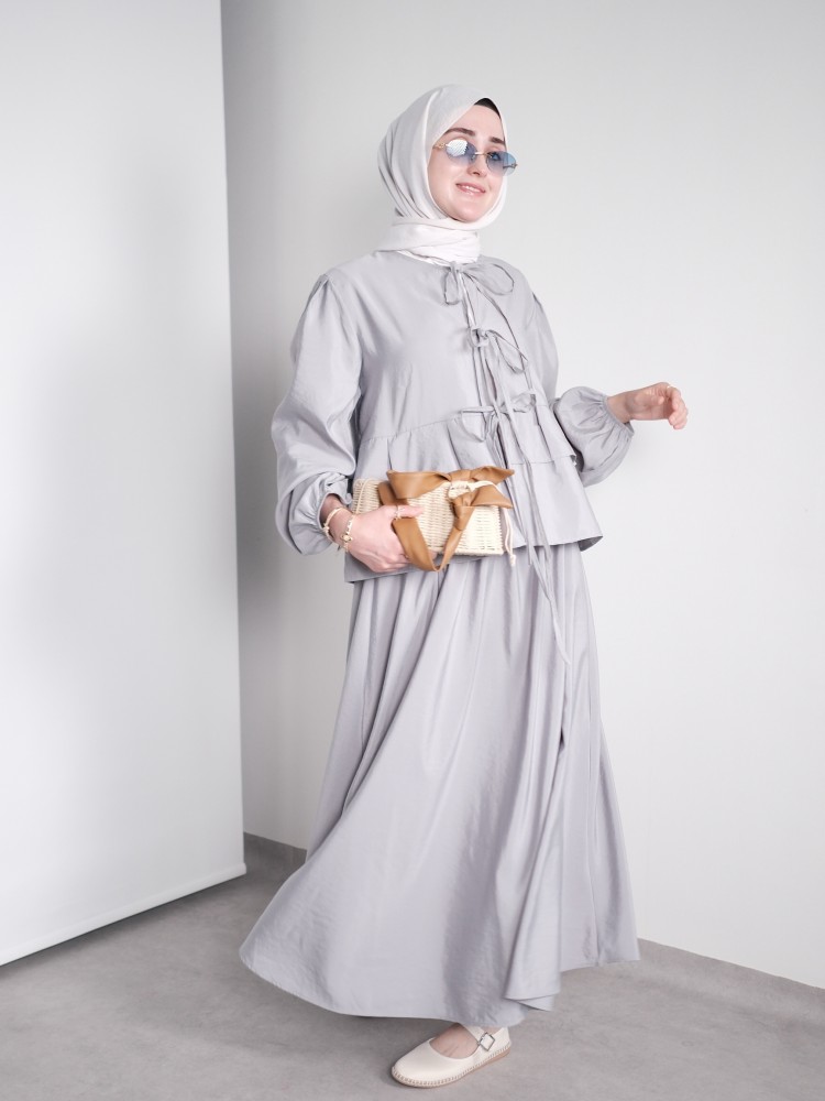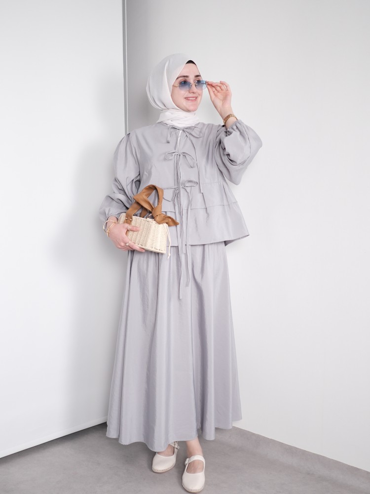 Fiyonk Detaylı Yazlık Takım – Açık Gri